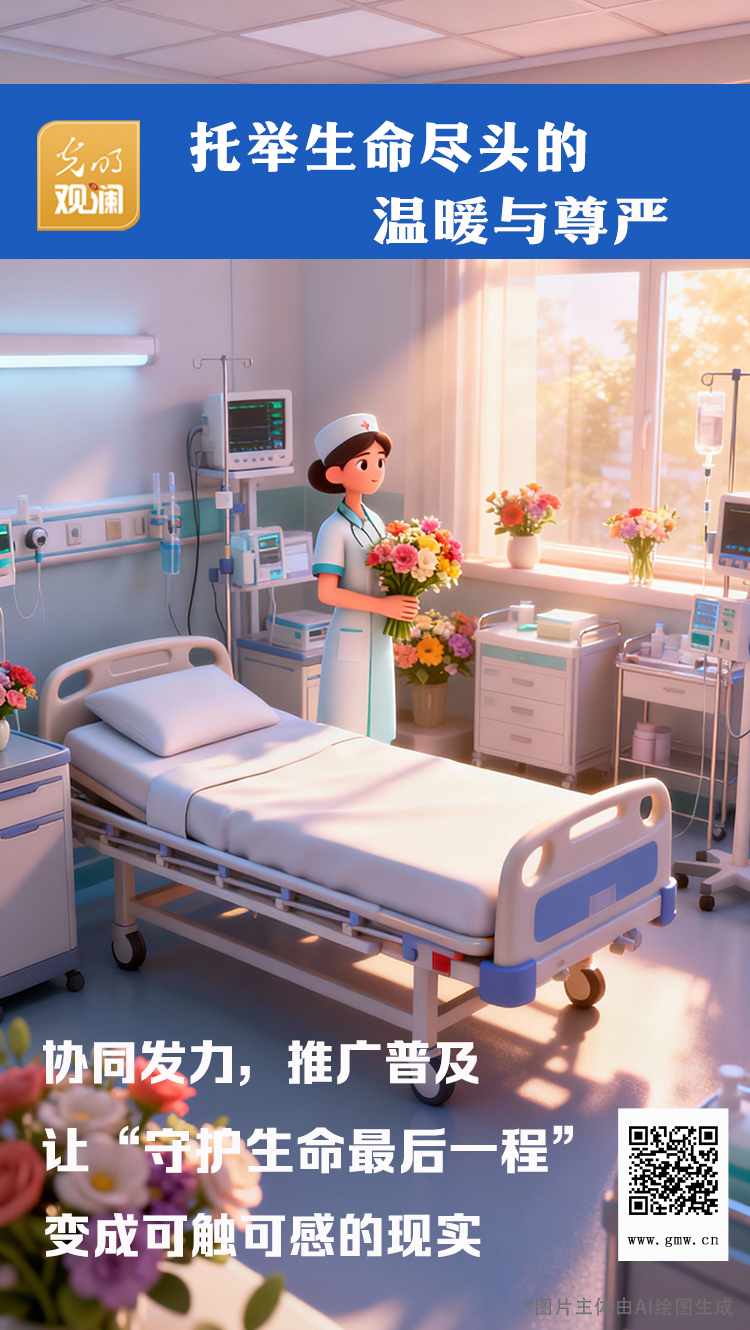 安宁疗护模式的发展与成熟也离不开创新,比如探索按床日付费、长期护理保险等支付方式,减轻患者经济负担。远程医疗技术也能广泛运用于安宁疗护中,比如通过视频会诊平台,基层医生与三甲医院专家实时联合制定镇痛方案;智能穿戴设备持续监测患者生命体征,数据自动同步至电子病历系统;远程护理指导支持家属在线学习压疮护理、紧急处理等技能,利于提升居家安宁照护质量。唯有协同发力,才能让更多终末期患者在生命的最后阶段感受到尊重与温暖,让“守护生命最后一程”尽快变成可触可感的现实。(文字:唐传艳 制图:金凌冰)