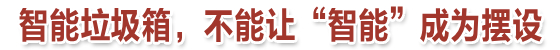 功能过于复杂的智能垃圾箱,也容易因为维护成本高而最终长期闲置。对于暂存生活厨余垃圾的场所,设计使用“全息悬浮按钮”功能,明显是不必要的“创新”。有专家表示,分类垃圾箱升级改造应“完善标准、立足实用、严管招标”。说到底,智能化是城市治理的加分项,如何让它真正响应市民诉求很关键。城市基础设施的升级更新可以向着智能化发展,但应当契合民生需求。推进垃圾分类、方便城市居民垃圾投放,不妨聚焦居民刚需。分类垃圾箱的升级,方便最好。